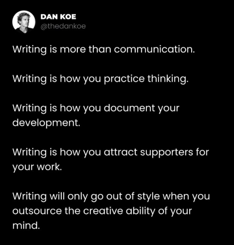 Zobacz na post pod którym sam bym się podpisał, bardzo ciekawa lista korzyści z pisania i publikowania. (A gość wie co mówi, społeczność kilkuset tysięcy osób, ponad 1 MLN ARR)