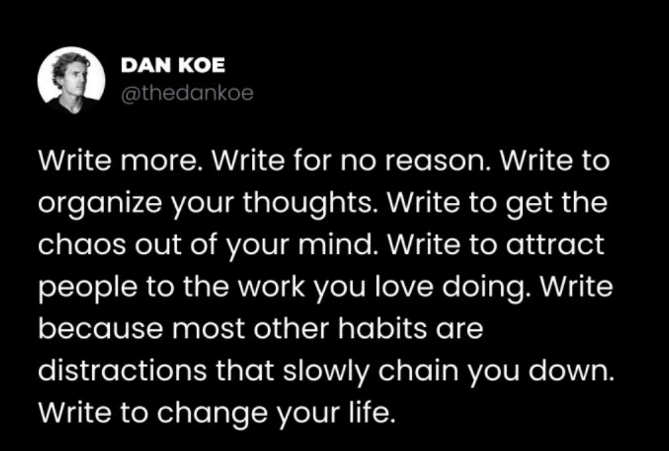 - Pisz, ponieważ większość innych nawyków to tylko rozpraszacze, które powoli cię ograniczają.